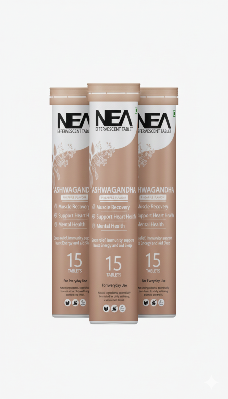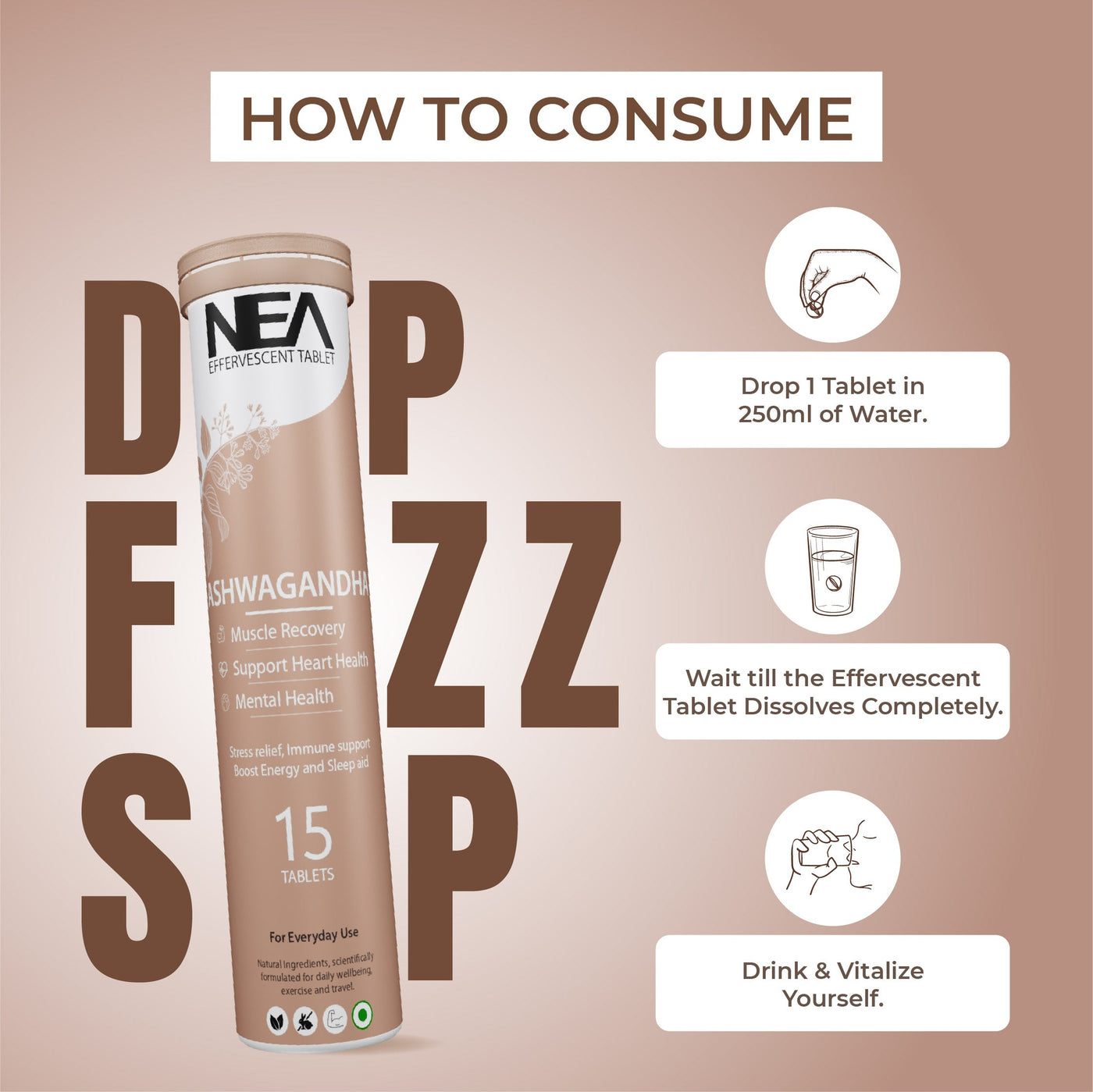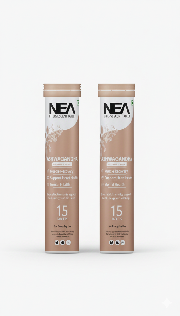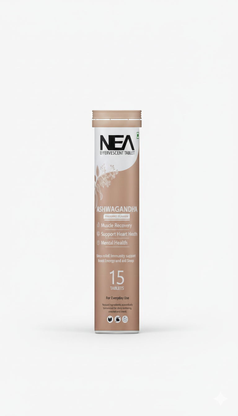 Nea आयुर्वेदिक अश्वगंधा इफ़र्वेसेंट टैबलेट | तनाव से राहत | ऊर्जा और दिमाग को बढ़ावा दें